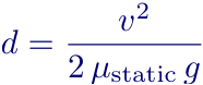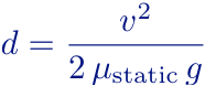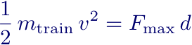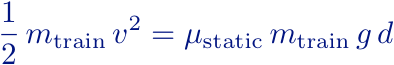 Now we simply cancel out the mass of the train on both sides, and solve for ‘d’, the distance required to stop a train without sliding.