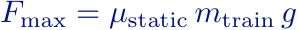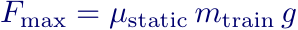 This says that the maximum static friction force depends on how sticky the interface is between the wheel and the track and, on flat terrain, the weight of the train (mass times acceleration due to gravity).