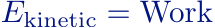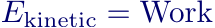 The kinetic energy is related to the mass of the train and its velocity, while the work done on the train is force times distance traveled: