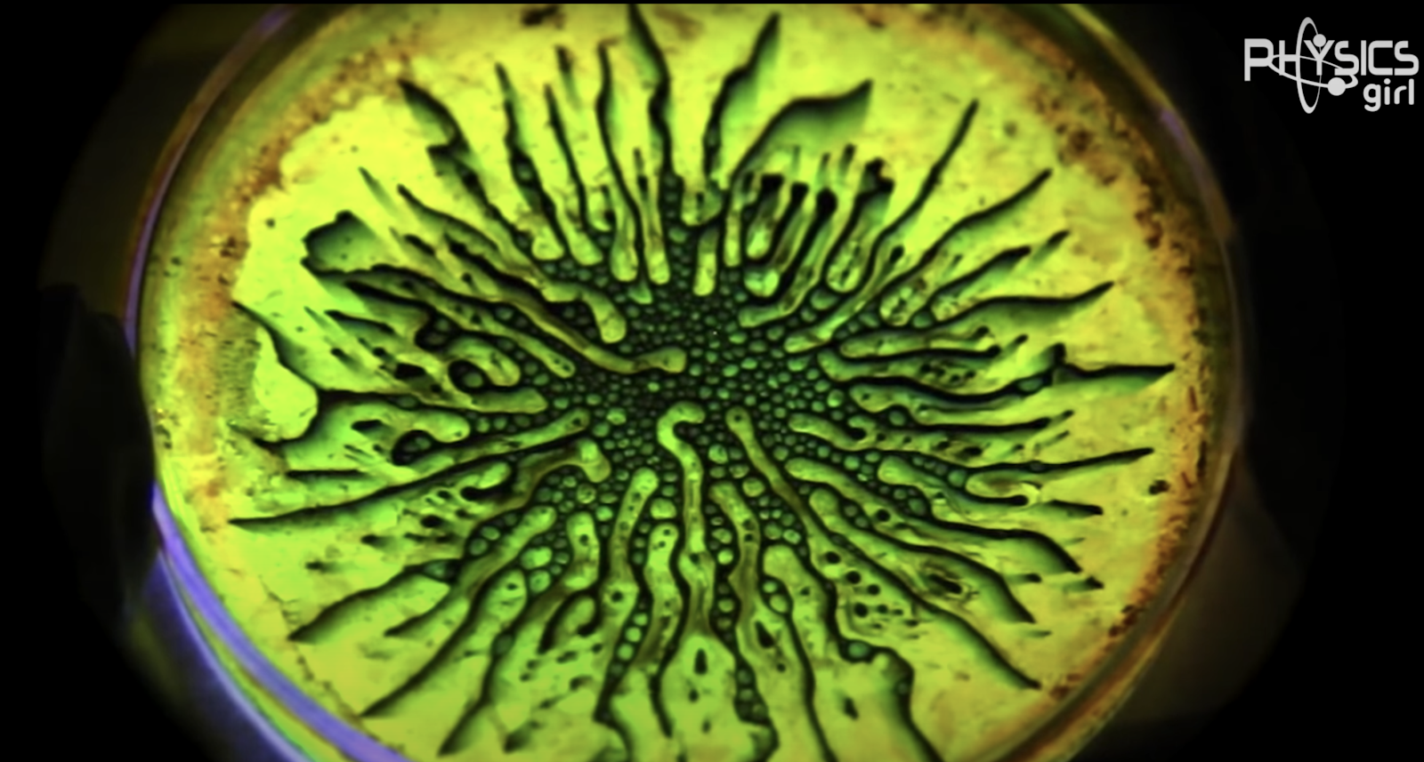 Glow sticks are a chemiluminescent reaction captured in plastic tubes. Combine ferrofluid with glow stick liquid and you get color-filled landscapes of black ooze. Physics Girl Dianna Cowern demonstrates and explains.