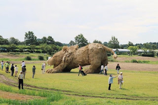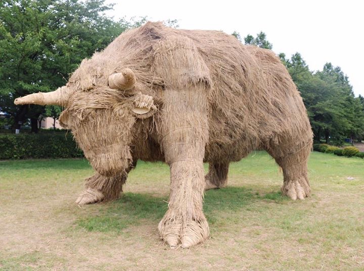 A wooden framework and curved plastic pipes provide a solid structure for ‘knit’ bundles of wara or rice straw, the byproduct of the season’s rice harvest. As volunteers work together to tie and wrap the bundles into place, an oversized straw animal is revealed. It’s one of many specially designed sculptures created for the annual Wara Art Festival (わらアート) in Japan’s Niigata Prefecture. Spoon & Tamago provides some background: