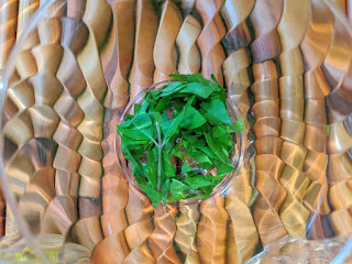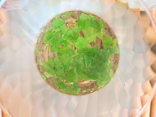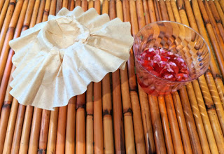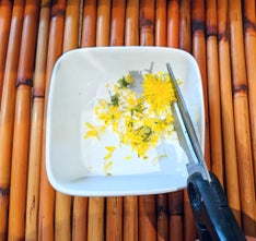 In order to make the inks with your natural materials ready. You’ll need to cut them up or crush them. You can cut them with scissors and/or crush them with the back of a spoon. If you’re making more than one color ink make sure you wash your scissors or spoon in between so you don’t mix colors. Add each natural material to a separate container.