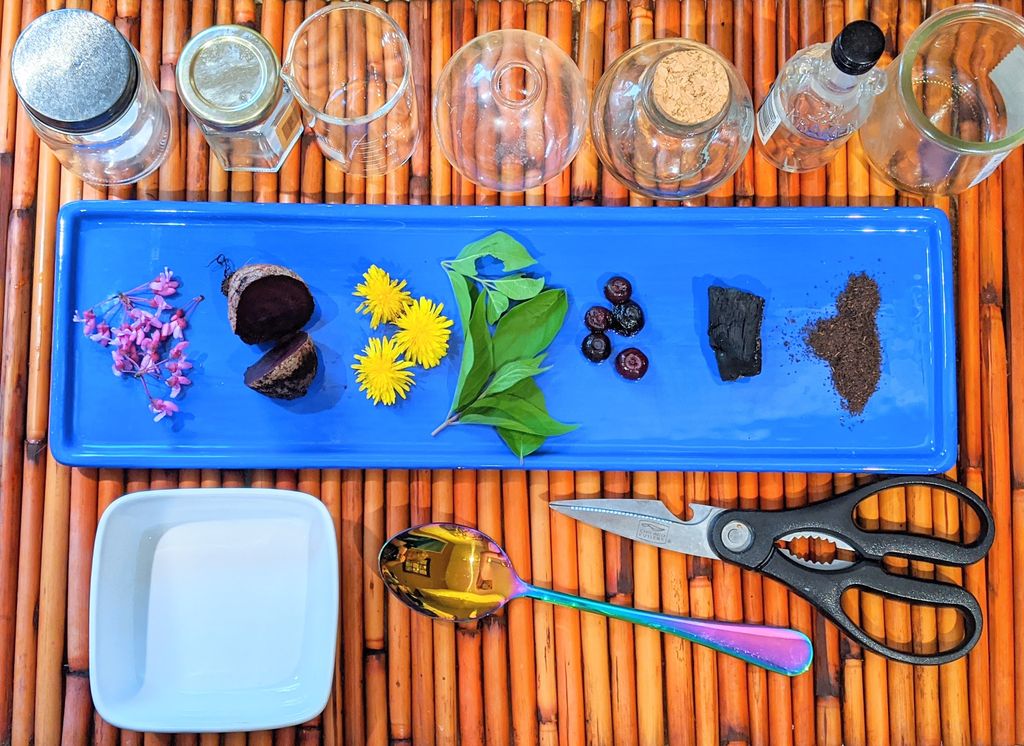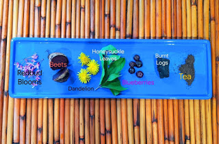 - Pigment materials- flower petals, leaves, tea, fruits & vegetables, spices & charcoal/soot