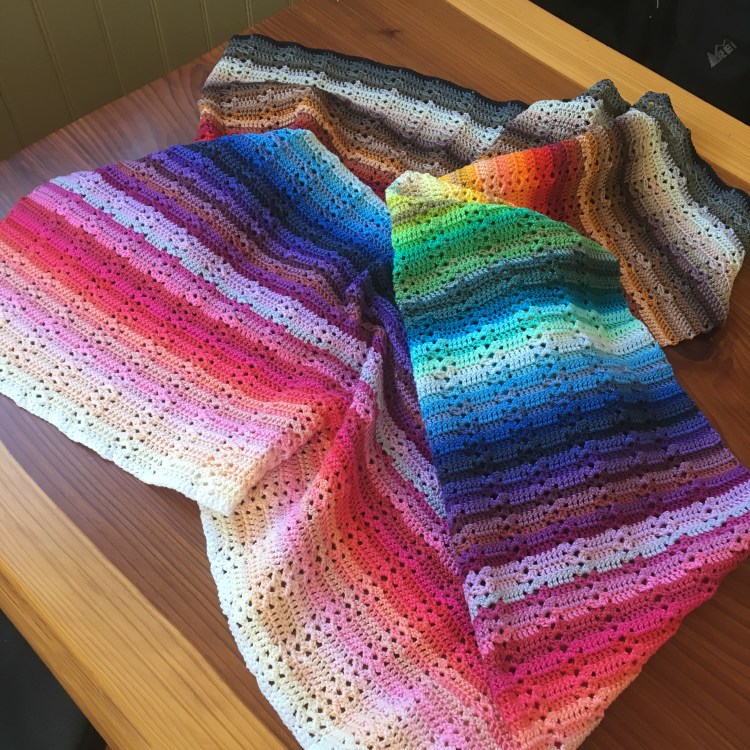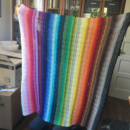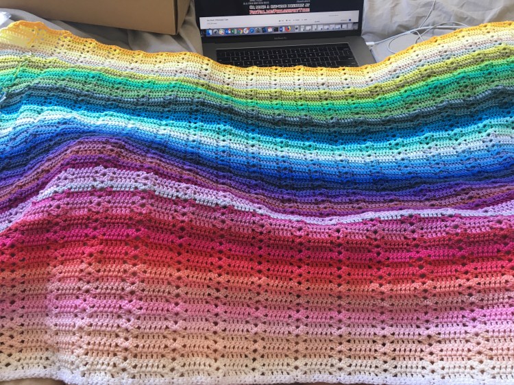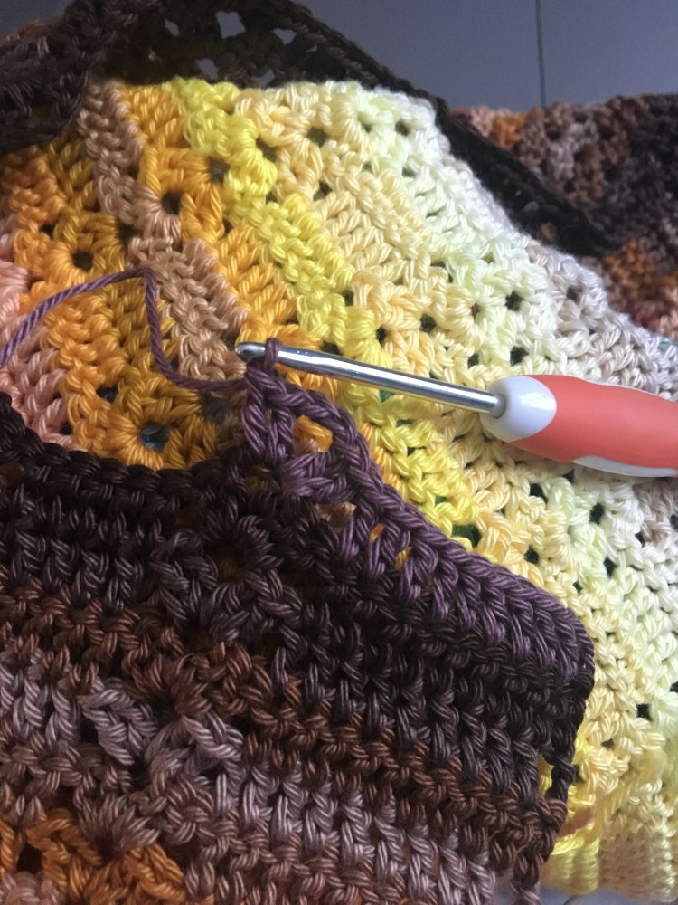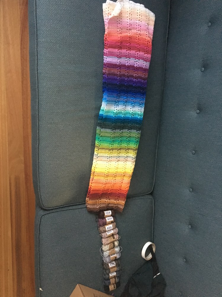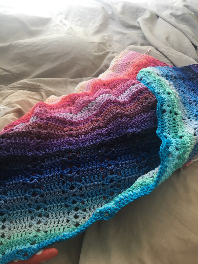 I decided to reverse row direction, in order to keep the blanket from “drifting” to the right.
