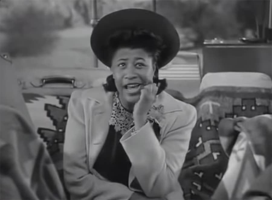 https://youtu.be/1bgFkeDLpSI Ella Fitzgerald, in her first screen role, sings A Tisket a Tasket in Abbott and Costello’s Ride Em Cowboy in 1942.