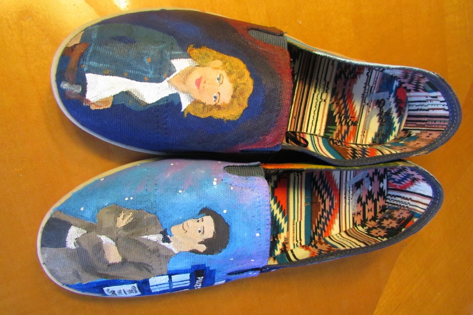 Hello! These are my Doctor Who shoes, themed with the Eleventh Doctor and River Song.