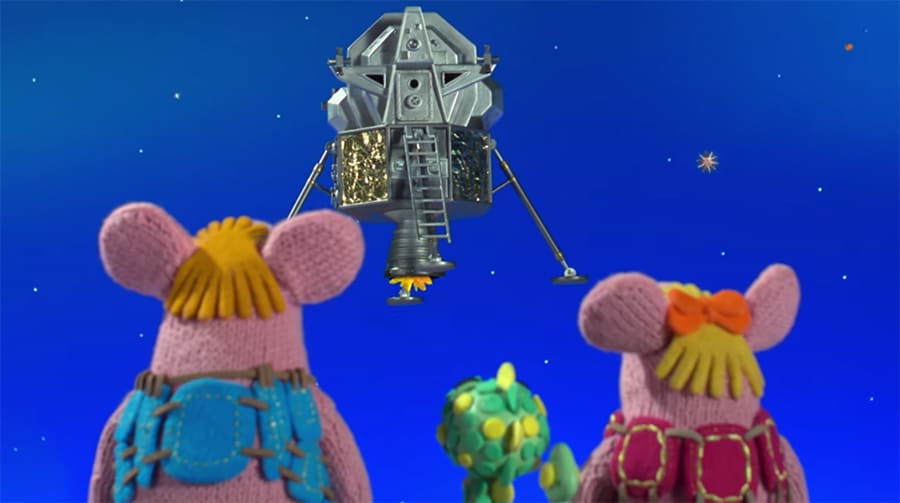 Clangers is a BAFTA-winning British stop-motion children’s series about “small creatures living in peace and harmony on – and inside – a small, hollow planet, far, far away.” It first-aired in 1969 and returned to television in 2015. In this 50th anniversary celebration episode, which aired in 2019, renowned space scientist Dr. Maggie Aderin-Pocock plays an astronaut that visits the Clangers.